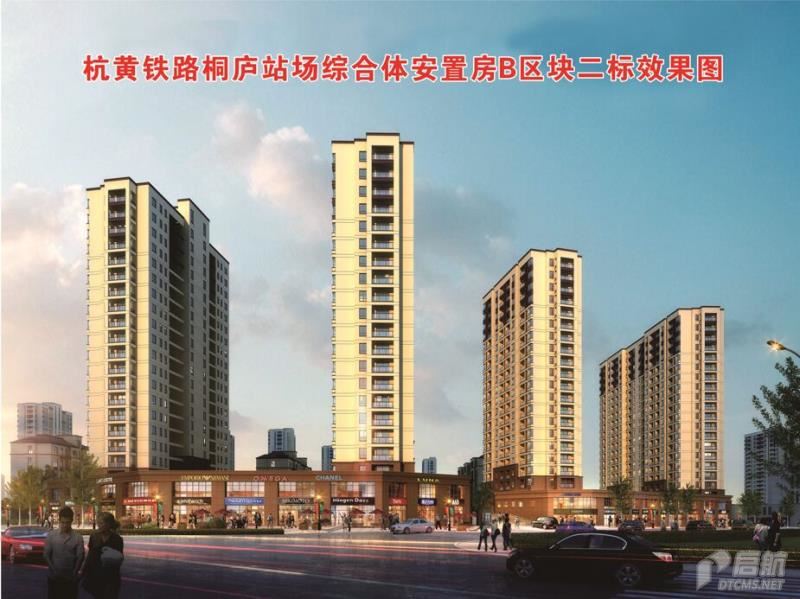 杭黃鐵路桐廬站場綜合體安置房B區塊二標。總建筑面積為48636.71平方米;結構形式為框架、剪力墻地上6-21層,地下1層,總工期:730天。