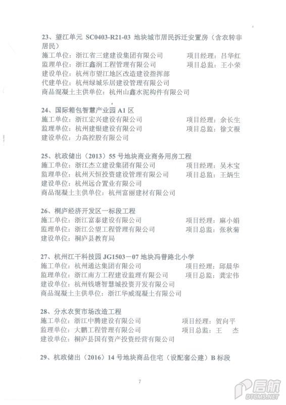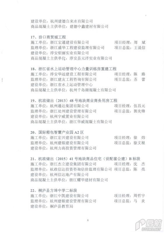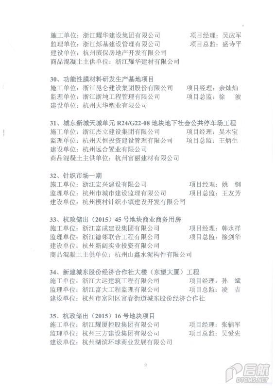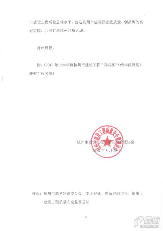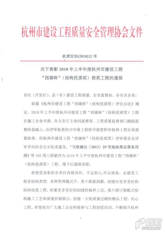 2018年上半年度杭州市建設工程“結構優質獎”